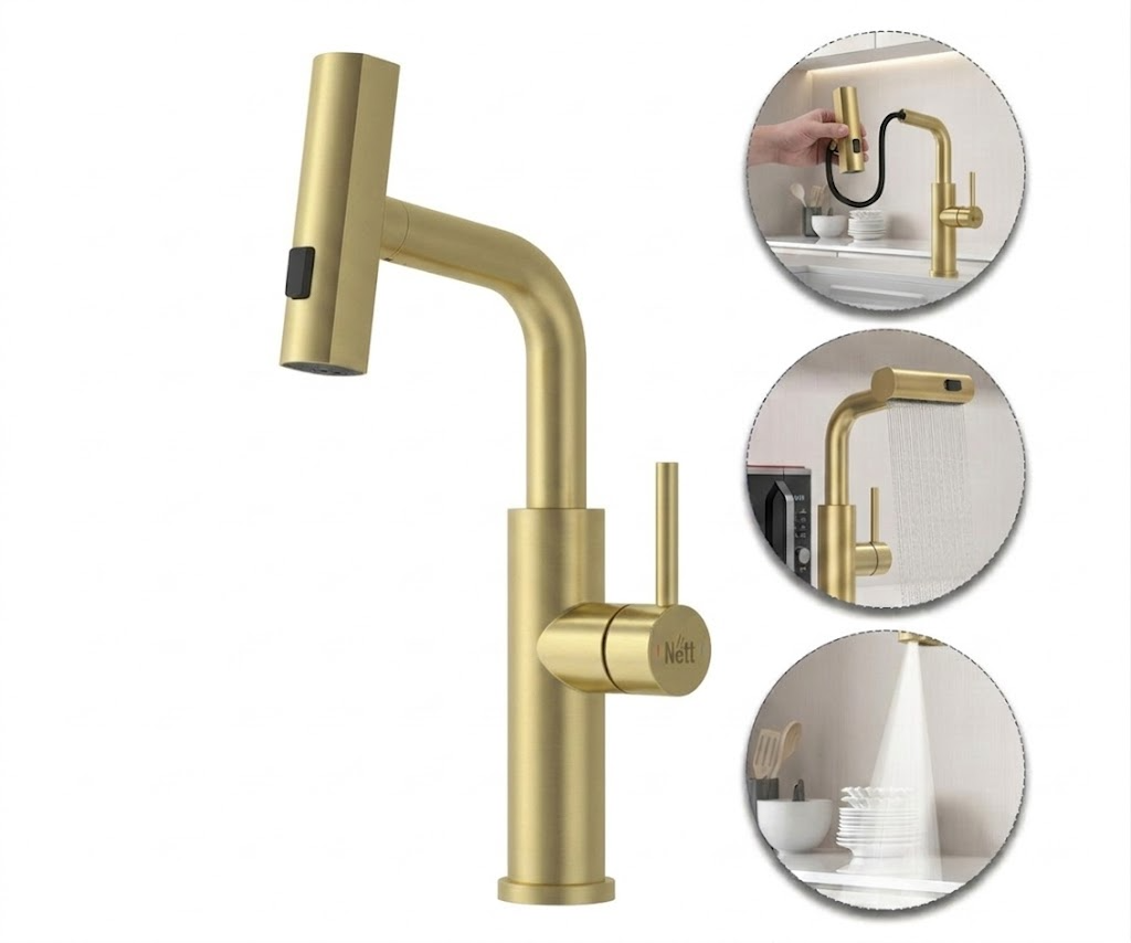 Bateria kuchenna wodospad z wyciąganą wylewką złota Nett LG-35