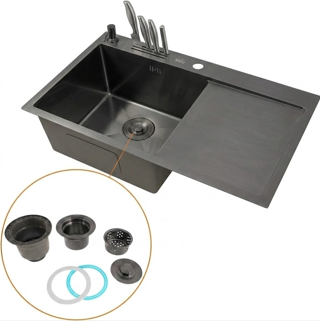 Czarny zlewozmywak kuchenny ze stali 1,5 mm z ociekaczem po lewej 80 cm Nett NB-7848L