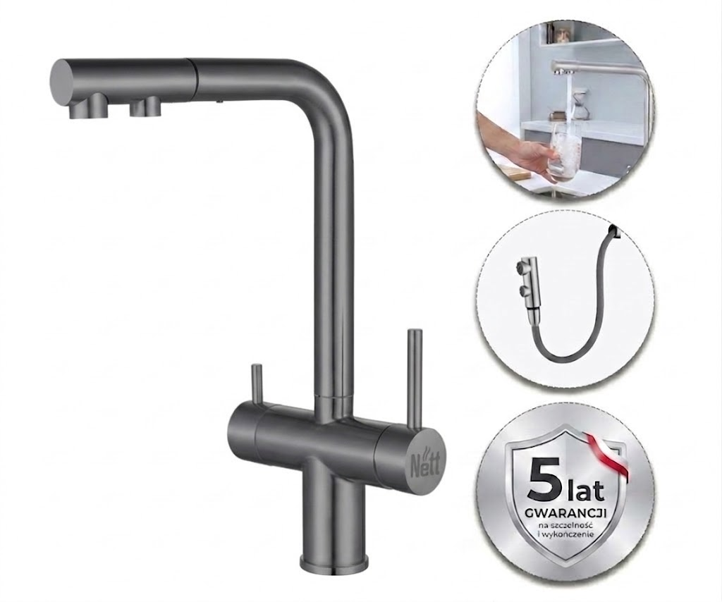Grafitowa bateria kuchenna trójdrożna do filtra ze stali Nett FWGr-33