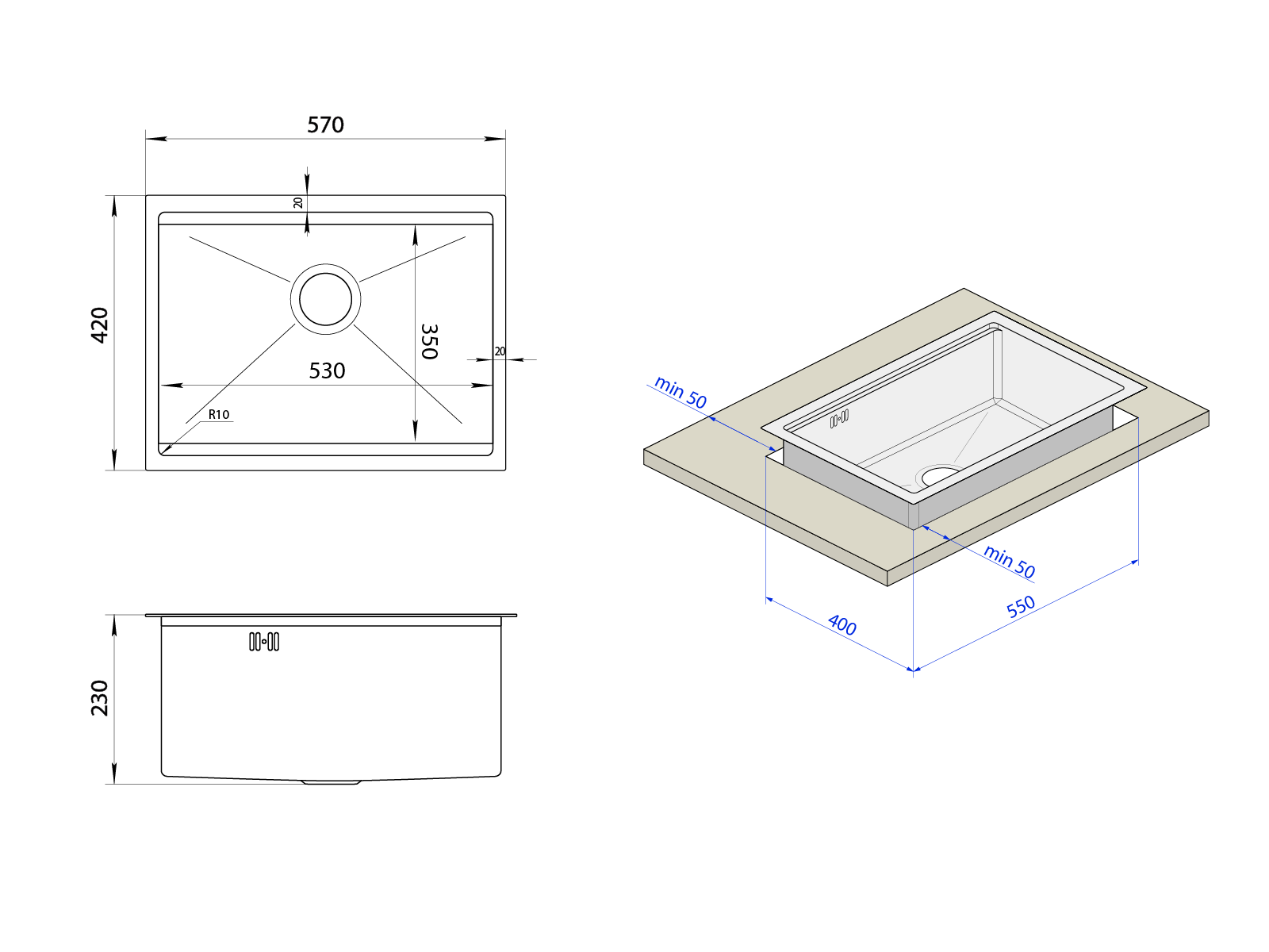 Minimalna grubość 1,5 mm w najcieńszym miejscu i aż 3 mm u podstawy – to konstrukcja bez słabych punktów. Podczas gdy standardowe zlewozmywaki kończą na symbolicznych 0,8–1,0 mm, nasz model zapewnia wyjątkową sztywność, odporność na odkształcenia i solidność, którą czujesz przy każdym użyciu.