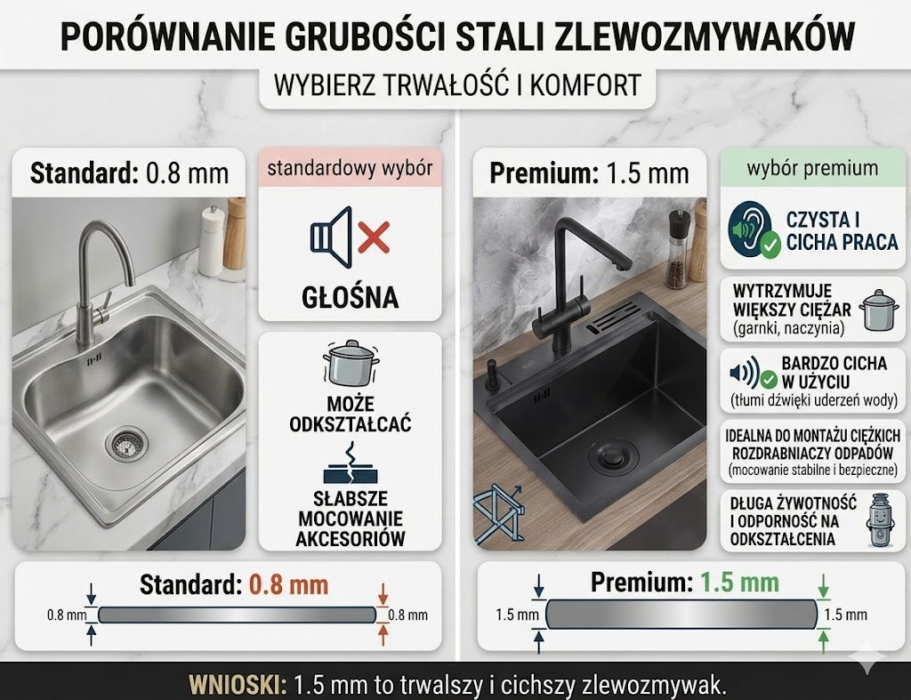 3. Grubość zlewozmywaka kuchennego do 3 mm