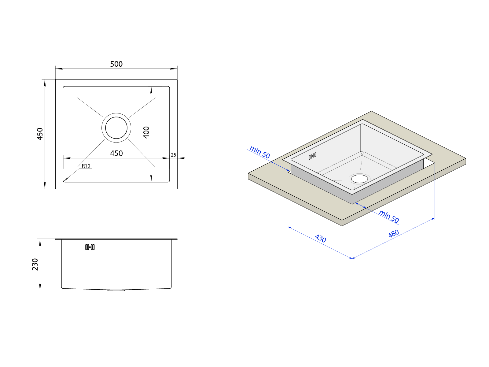 Standardowa komora 45×40 cm sprawia, że zlewozmywak bez problemu zastąpi każdy typowy model w Twojej kuchni. Dwa sposoby montażu – wpuszczany w blat lub podwieszany pod blatem – dają pełną elastyczność aranżacyjną. Dolne uchwyty montażowe są dołączone w zestawie, więc jesteś gotowy do montażu od razu po rozpakowaniu.