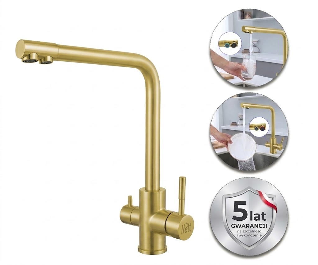 Złota bateria kuchenna ze stali z podłączeniem do filtra "Frosh" Nett FG-33
