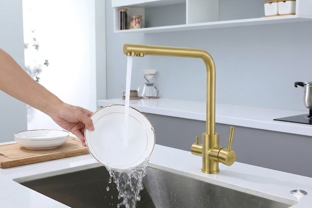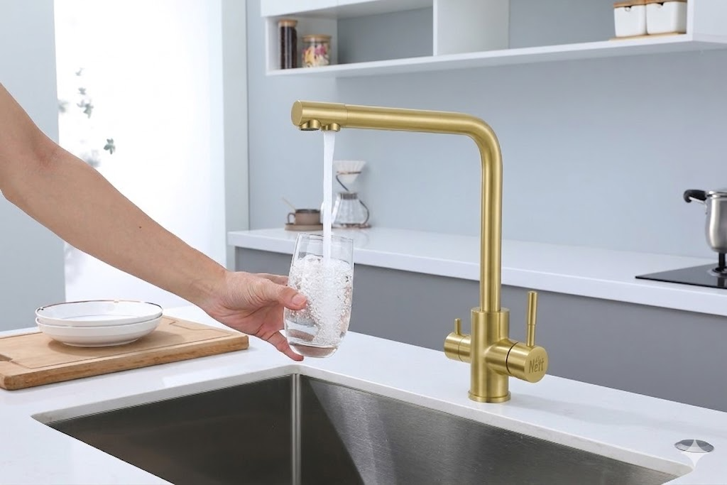 Cechy złotej baterii kuchennej z filtrem