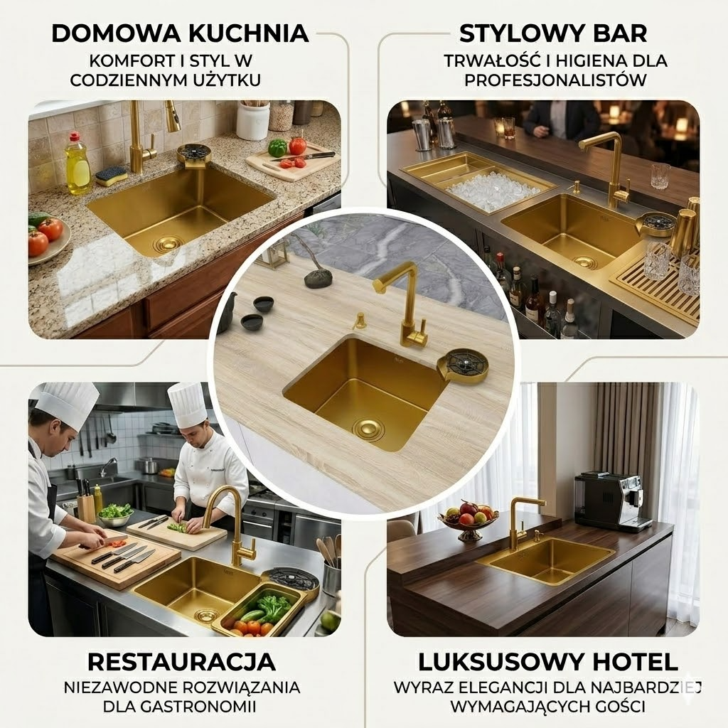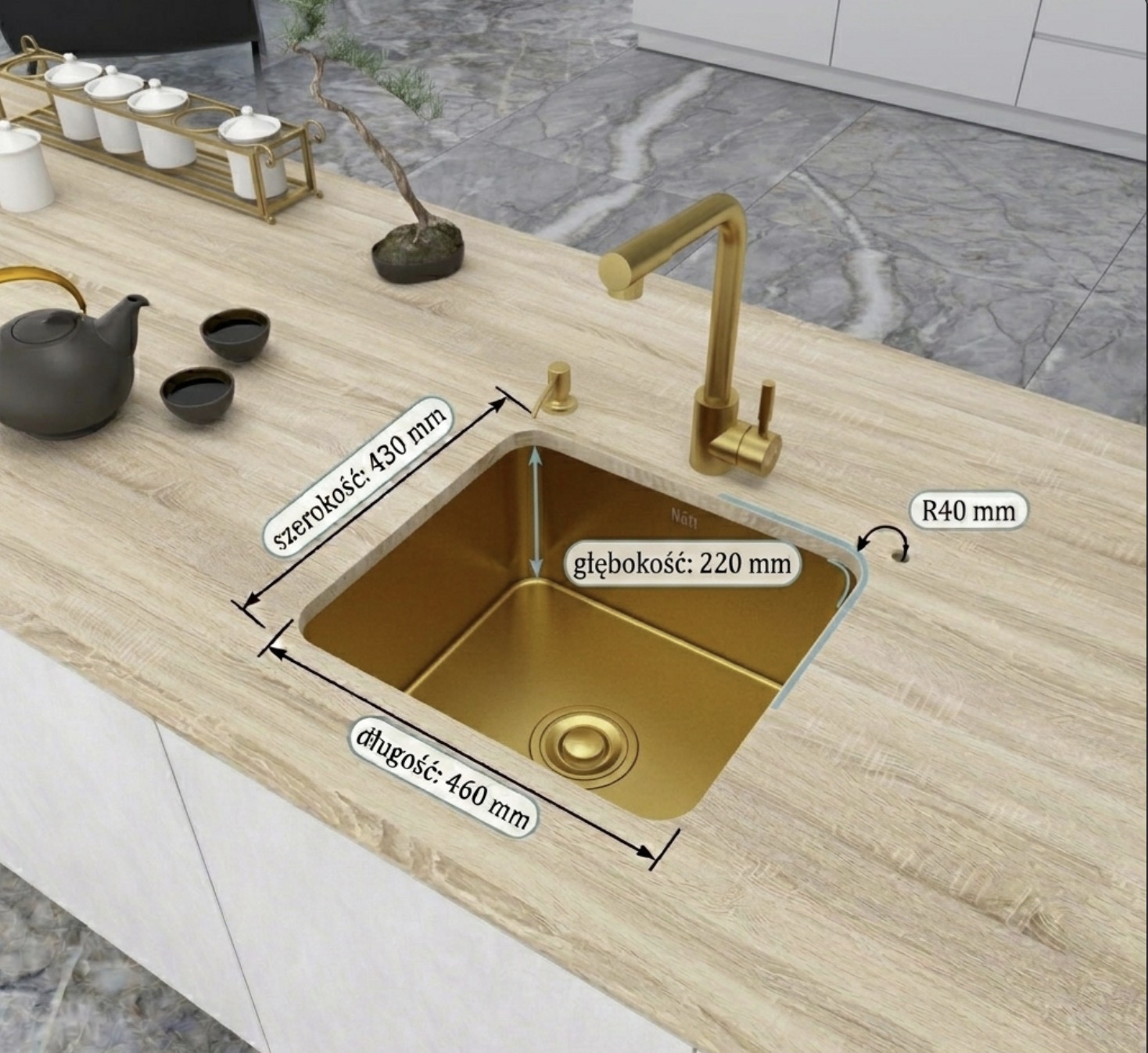 Złoty zlewozmywak ze stali nierdzewnej 46 cm podwieszany Nett NG-4643